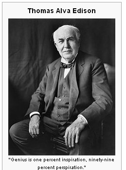 Thomas Edison, inventor of the light bulb, the phonograph, and the video camera, among other devices and processes. He had over a thousand patents in his name and his inventions changed the nature of life and communication in the world. Unfortunately he promoted his video camera in Sweden as the "Pornograph" (also changing the nature of the adult entertainment industry), thus making him a candidate for #10 on the overrated genius list. He is also rumored to have coined the marketing term "Gentleman's Club", which he often frequented in disguise. His famous quote (seen left) is a derivation of the original which went "Genius is one percent inspiration, ninety-nine percent sweaty dancing girls!"